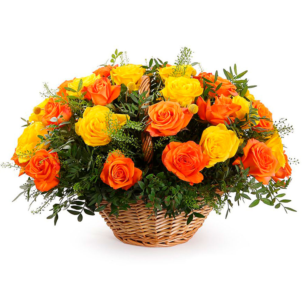 Цветы в корзинке «Закат» с гарантией качества, цены и быстрой доставки!